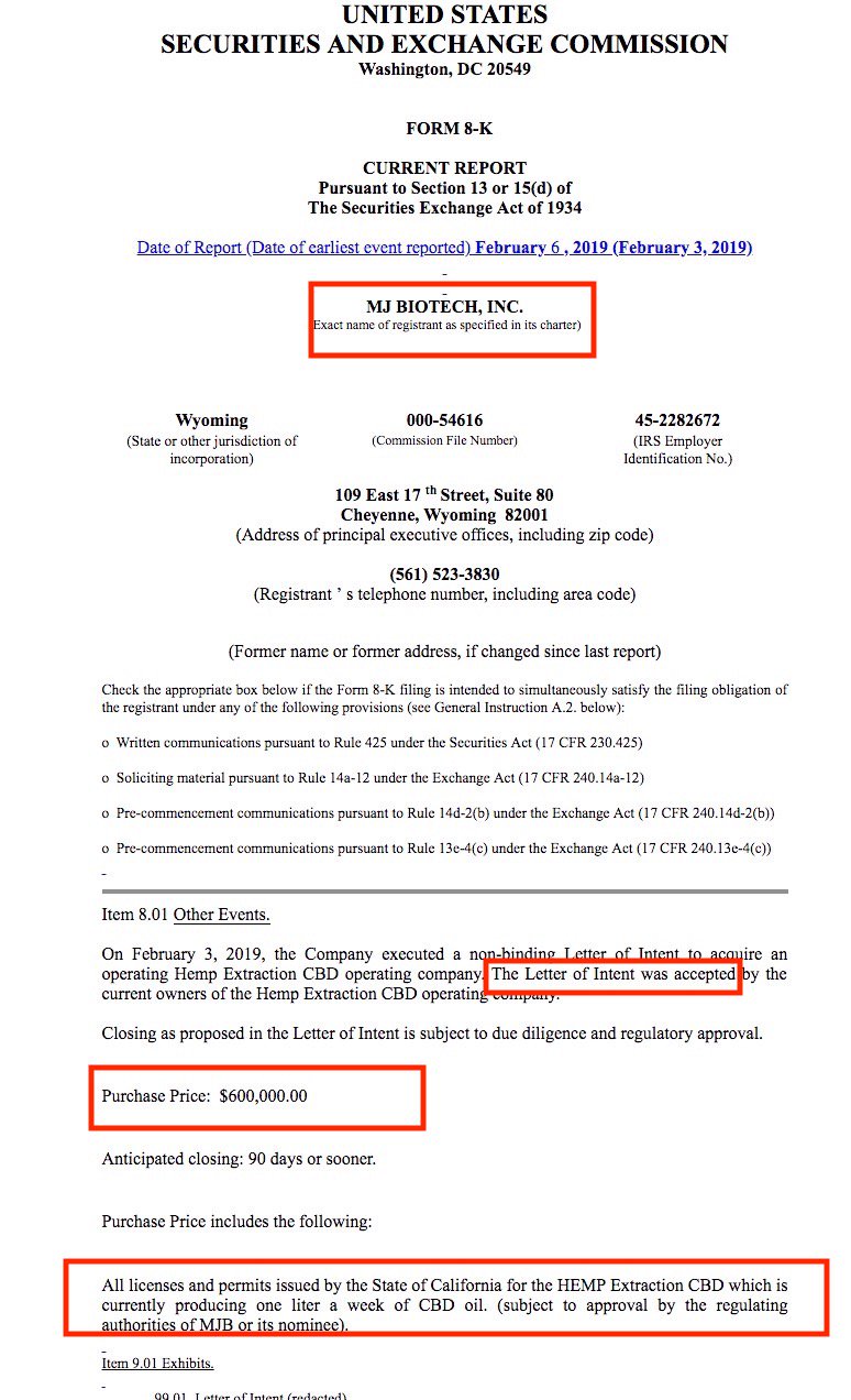 MJ Biotech, Inc. Signs Letter of Intent for the Acquisition of a Hemp Based CBD Extraction Laboratory